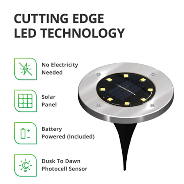 - Included: 1X Solar Powered Ground Lights.