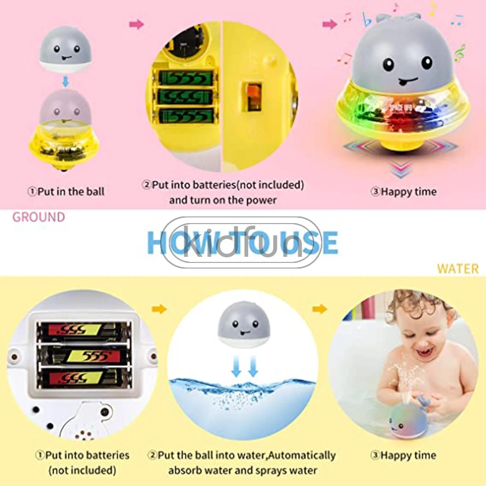 The water toy has an automatic senses, and place it the water, they will automatically induction absorbs water from the bottom and sprays an appropriate height water column. When leaves water, all effects will stop immediately. No manual operation is required.